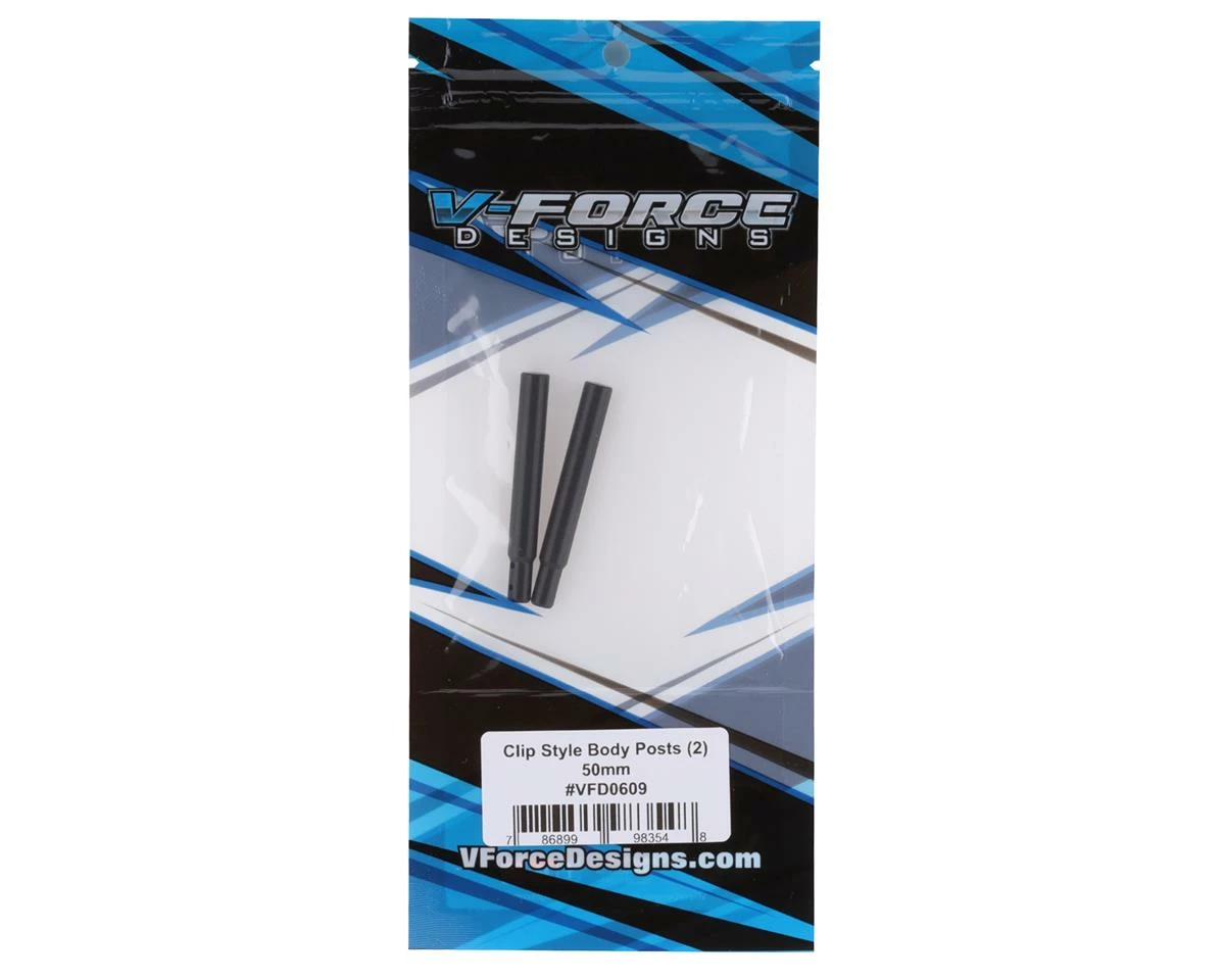 DragRace Concepts 50mm Clip Style Body Post. These optional body posts are intended for the V-Force Designs Clip Style Body Mount System. Made from Delrin to allow them to be cut down for specific applications. Package includes two clip style body posts.