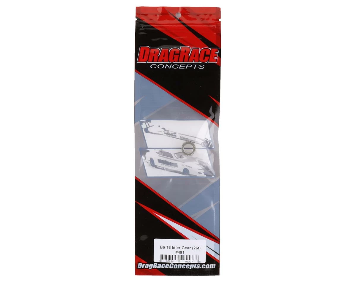 The DragRace Concepts B6/T6 Aluminum Hardcoated Idler Gear is a 7075-T6 hard coated aluminum idler gear option for Team Associated RC10 B6 laydown transmissions. This is a direct replacement upgrade for the Team Associated plastic 26t idler gear (ASC91717), and offers the improved durability required for high power applications.