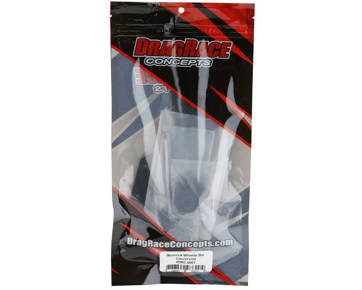The DragRace Concepts Maverick Wheelie Bar Conversion Kit gives you everything you need to convert your Maxim or Drag Pak Slash Mid Motor to a “Flat” style wheelie bar. This optional wheelie bar features a rigid carbon fiber backbone and is easily adjusted using the steel turnbuckle to give you consistent launches pass after pass. Package includes all parts needed to add the Maverick wheelie bar to the DragRace Concepts Maxim or Drag Pak Slash Mid Motor platforms.