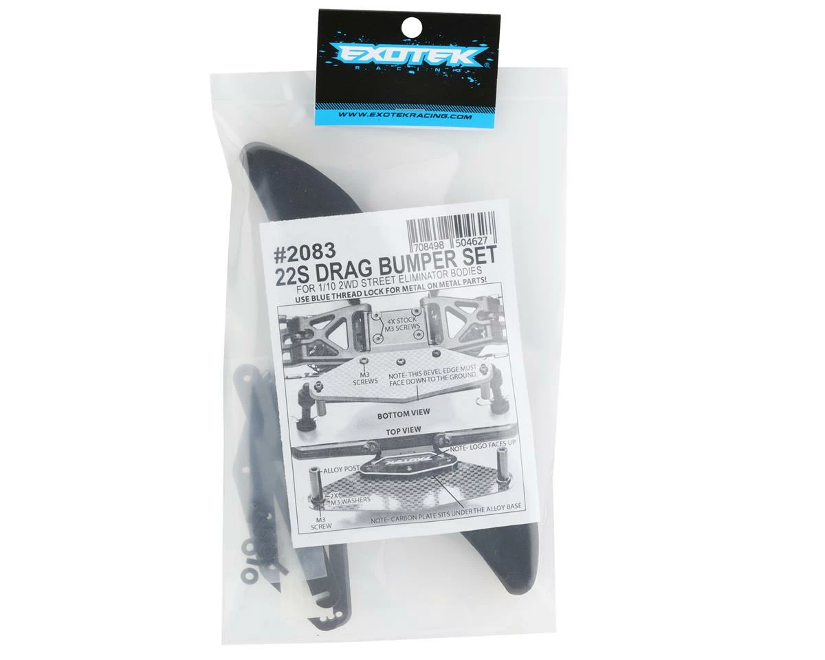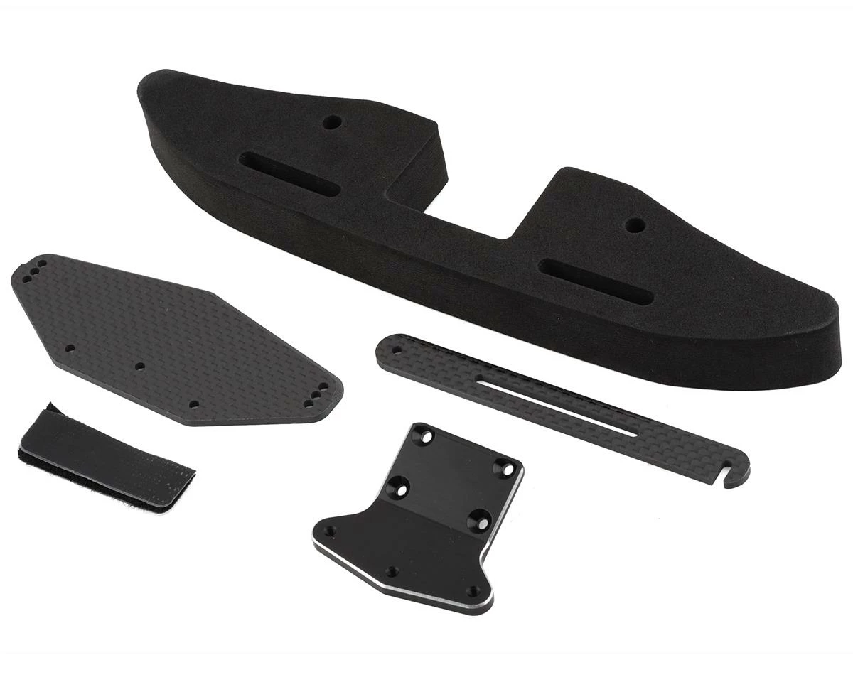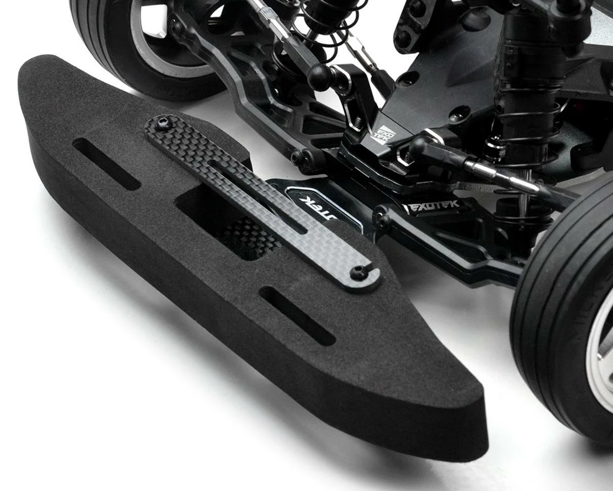 The Exotek 22S Drag Front Bumper Set with Mount and GNSS Holder is a great option to add protection and data logging potential to your ride. Made for the Losi 22S Drag, this foam bumper is made from an extra wide, high density foam. The foam features a cutout in the center rear of the bumper that allows for an optional SkyRC GNSS (SKY-500023). A carbon fiber locking arm sits above the GNSS to securely hold your data logger in place. The main mount is made from aluminum for added durability. Get the Exotek 22S Drag bumper and protect your investment with style.