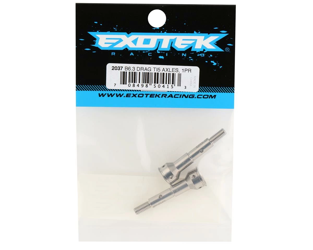 The Exotek B6.3 Titanium Lightweight Rear CVA Axles are a great option to decrease rotational mass. Weighing just 3.5 grams each, these axles are over 40% lighter than the stock steel axles. This reduction in rotating mass will help aid acceleration. Package includes two optional CVA Axles intended for the Team Associated B6.3.