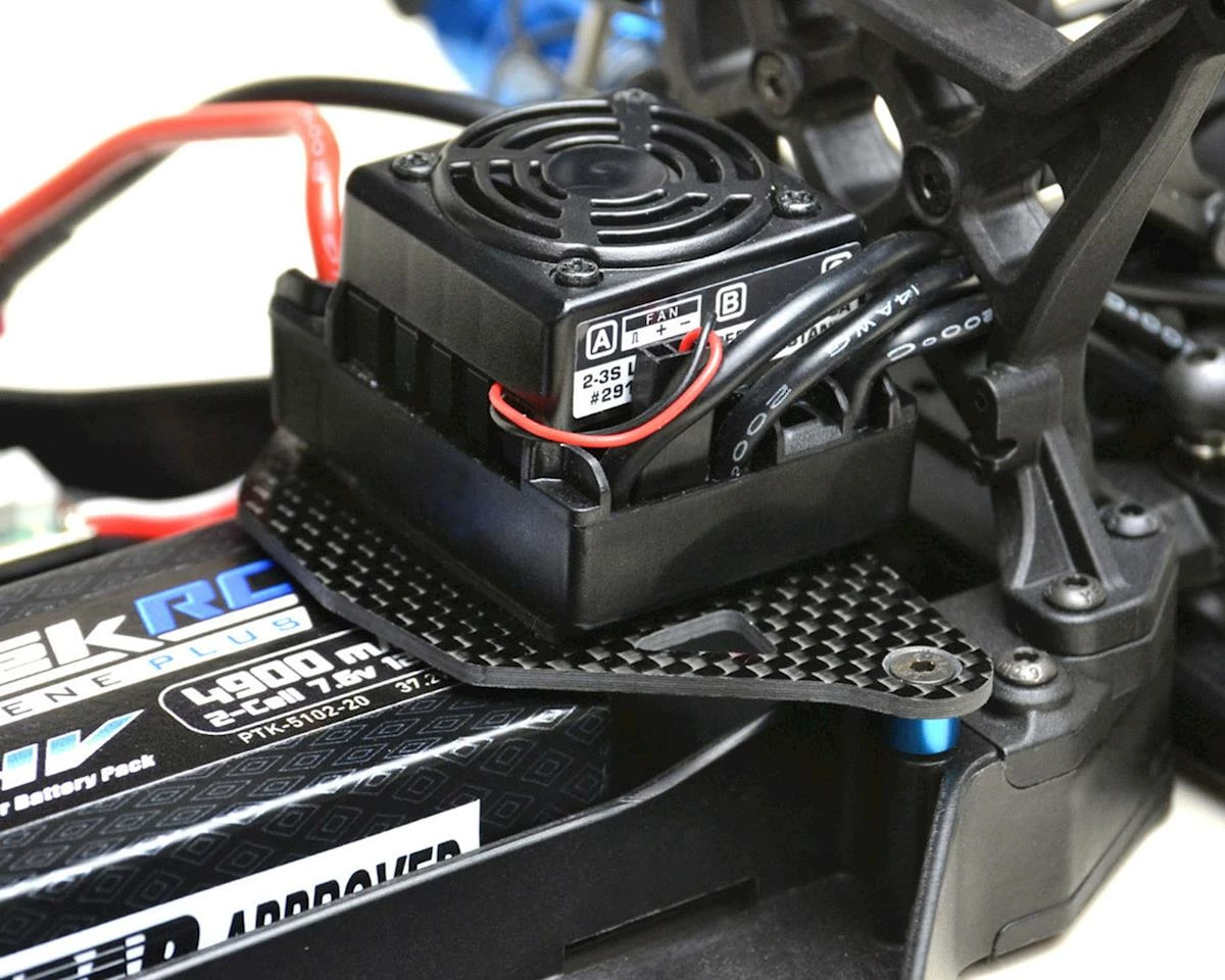 This is an optional Exotek DR10 Carbon ESC Plate, suited for use with the Team Associated DR10 Electric Drag Car Race Kit. This lightweight 2mm carbon fiber esc tray allows easier mounting of larger esc’s and stock esc’s in a centrally balanced location. Package includes alloy posts and hardware.