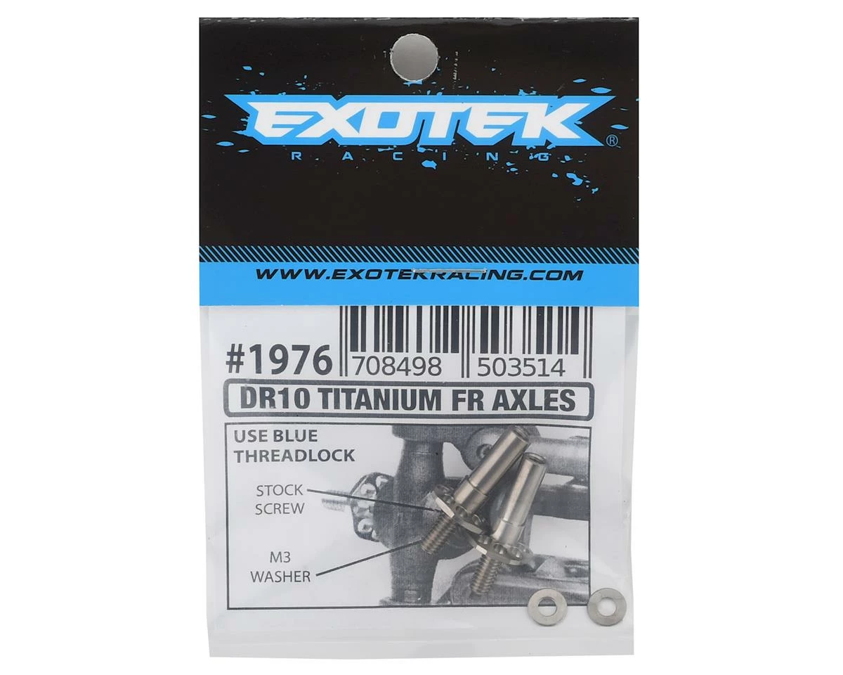 Exotek DR10 Titanium Front Axles are an incredibly lightweight option for the Team Associated DR10. These front axles are precision machined from premium titanium that weighs only 4.5 grams per pair and are perfect for reducing rotating mass for quicker acceleration. The rounded and angled hex profile also makes wheel installation extra quick and easy.