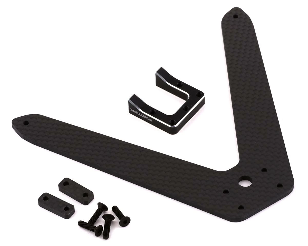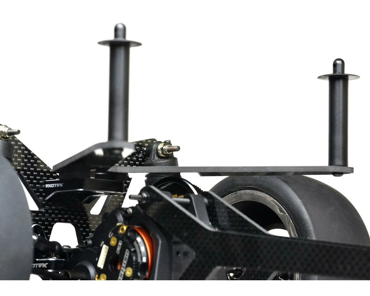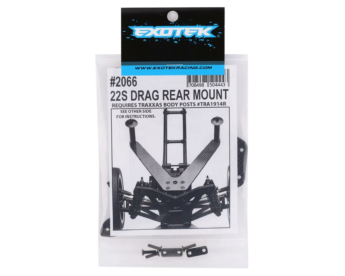 Exotek Losi 22S Drag Rear Pro Body Mount Set. This optional body mount is made from 3mm thick carbon fiber and attaches to the upper transmission of the Losi 22S Drag. The simplified design makes it much easier to remove the transmission for servicing by eliminating the factory bracing. Package includes one carbon fiber body mount.