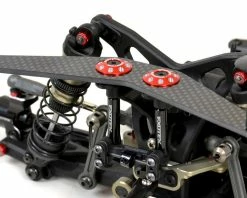 The Exotek TLR 22/RB7 Carbon Body Mount Plate is an optional body mount accessory that makes it easy to mount larger bodies used for drag racing, or oval applications. Cut from strong 2.5mm glossy carbon fiber plate, the plate attaches to the stock wing mounts of TLR22 and RB7 series wing mounts using the stock hardware or stock wing mount buttons.
