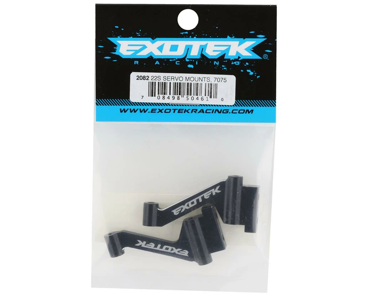 Exotek TLR 22S Drag Aluminum Servo Mount. This optional heavy duty servo mount is intended for the Losi 22S Drag chassis. Using this design will allow for easier maintenance and more consistent steering action. Package includes two aluminum servo mounts.