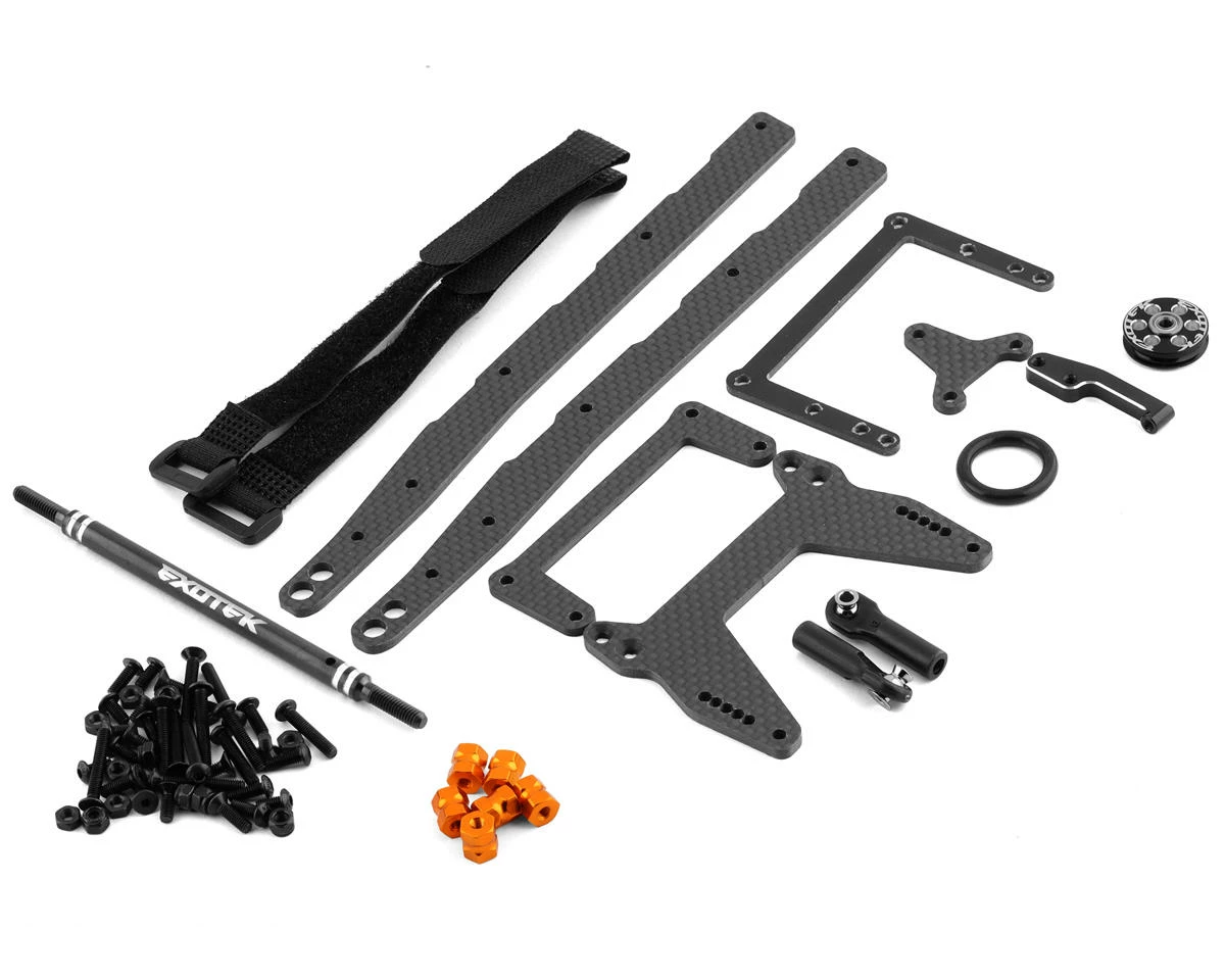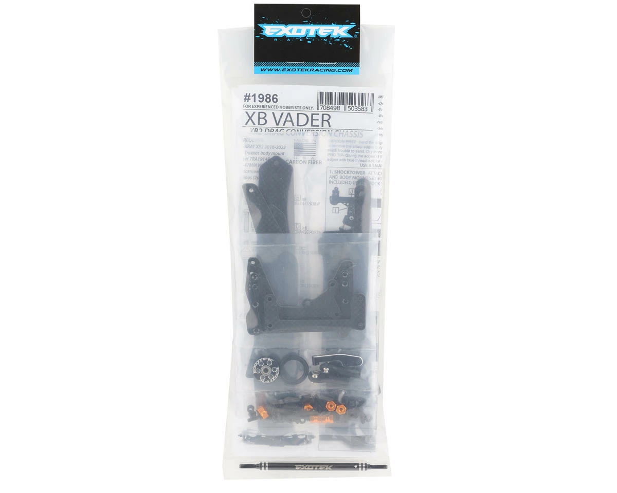 The Exotek Xray XB2 “Vader” Drag Race Chassis Conversion Kit is what you need to convert your Xray XB2 buggy platform into a no prep cash race contender. Recommended for experienced builders, this incredibly lightweight “street eliminator” chassis conversion set provides the legal 13″ wheelbase to fit under the hottest “narrow” no prep bodies on the market. This carbon fiber drag conversion set is intended for the Xray XB2 ’16-XB2 ’22. The Vader conversion kit uses a multi-drilled gear box plate that accepts most XB2 gearboxes and suspension hangers (’16-’22).