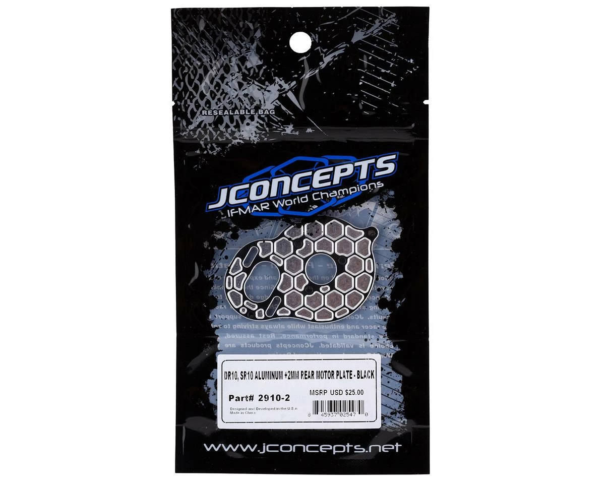 The JConcepts DR10/SR10 +2 Aluminum “Honeycomb” Motor Plate, is a great way to add strength and allow for more gearing on your Team Associated DR10 or SR10. This motor plate features longer slots allowing for taller pinion sizes to be used. Made from 3mm thick aluminum with a distinct honeycomb patter machined to aid in heat dissipation, weight reduction and style. Package includes one motor plate.