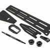 The R-Design B5M/SC5M Wheelie Bar Mount V2 is a machined 6061-T6 aluminum option that will let you mount a Traxxas style wheelie bar onto the Team Associated B5M and SC5M platforms. The V2 mount works with both the B5M and SC5M shock towers, and weighs 36 grams, making it 30g lighter than the V1 design. It also offers a larger vertical adjustment range in the side bars because of the offset slot locations. It features vertically adjustable mounting bars and includes grade 12.9 metric hardware required for installation.