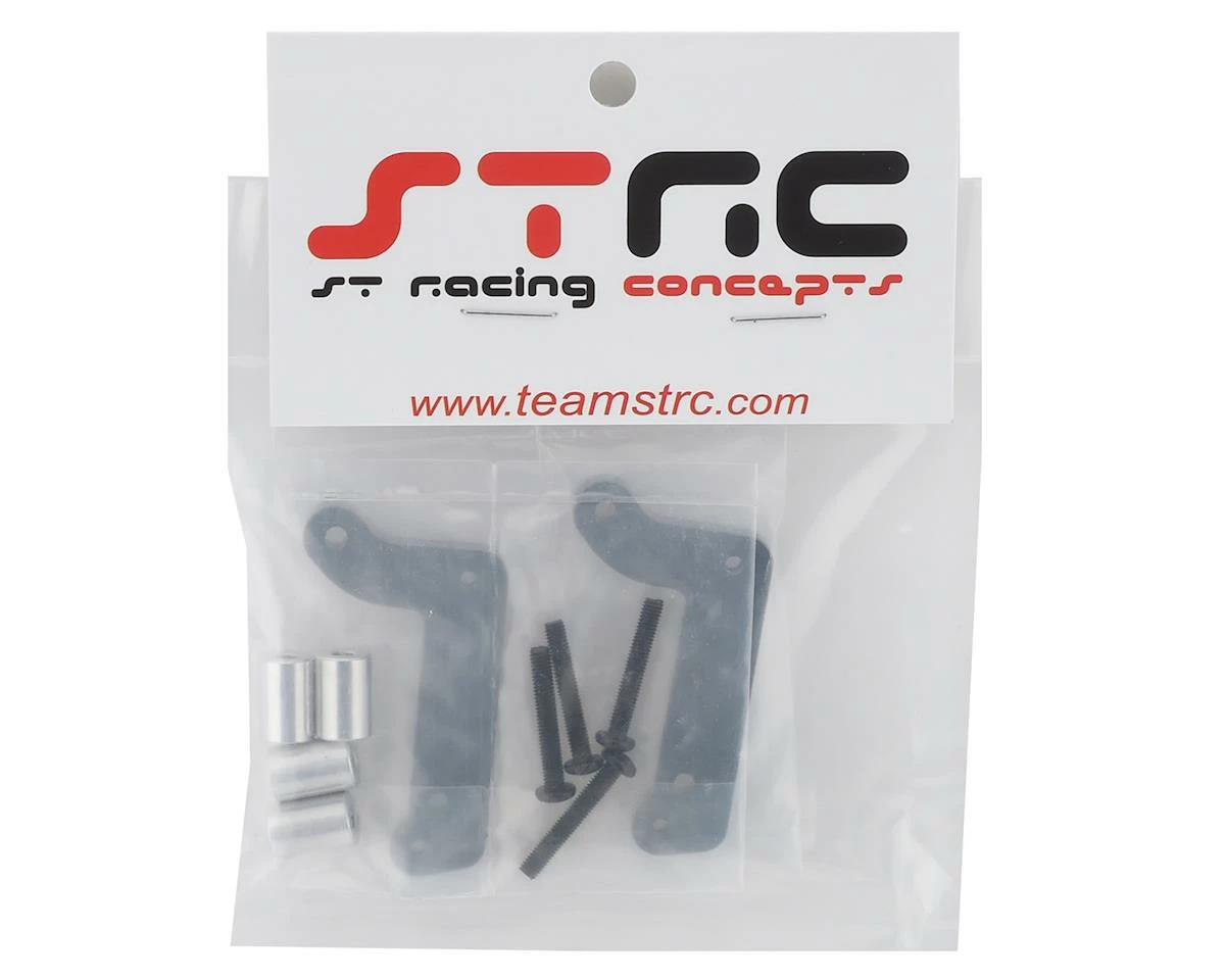 The ST Racing Concepts DR10 Aluminum Wheelie Bar Adapter Kit allows installation of the STRC Slash wheelie bar (SPTST3678WBK), on the Associated DR10 chassis. Package includes the brackets, spacers and hardware needed for installation.