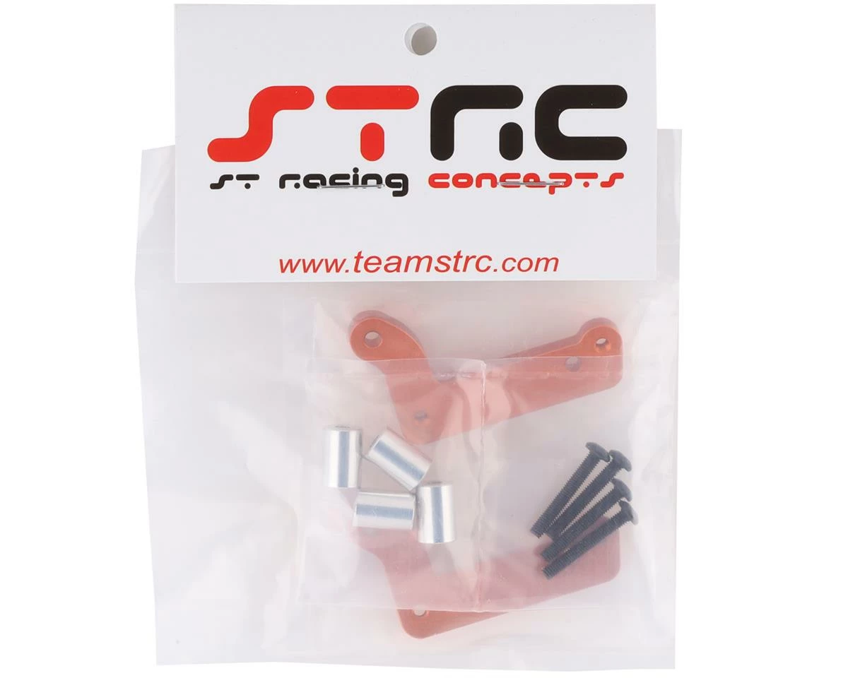 The ST Racing Concepts DR10 Aluminum Wheelie Bar Adapter Kit allows installation of the STRC Slash wheelie bar (SPTST3678WBK), on the Associated DR10 chassis. Package includes the brackets, spacers and hardware needed for installation.