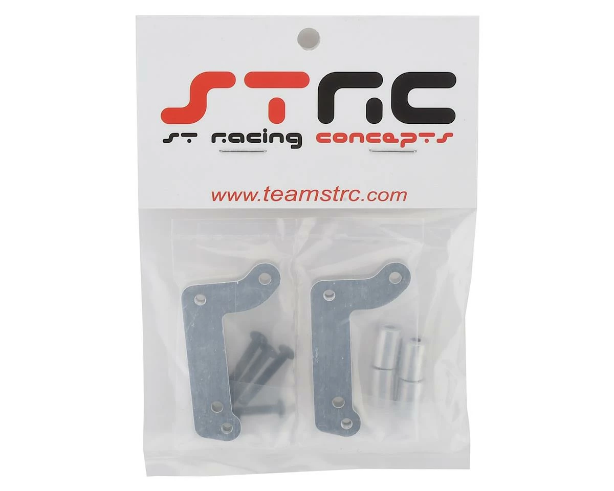 The ST Racing Concepts DR10 Aluminum Wheelie Bar Adapter Kit allows installation of the STRC Slash wheelie bar (SPTST3678WBK), on the Associated DR10 chassis. Package includes the brackets, spacers and hardware needed for installation.