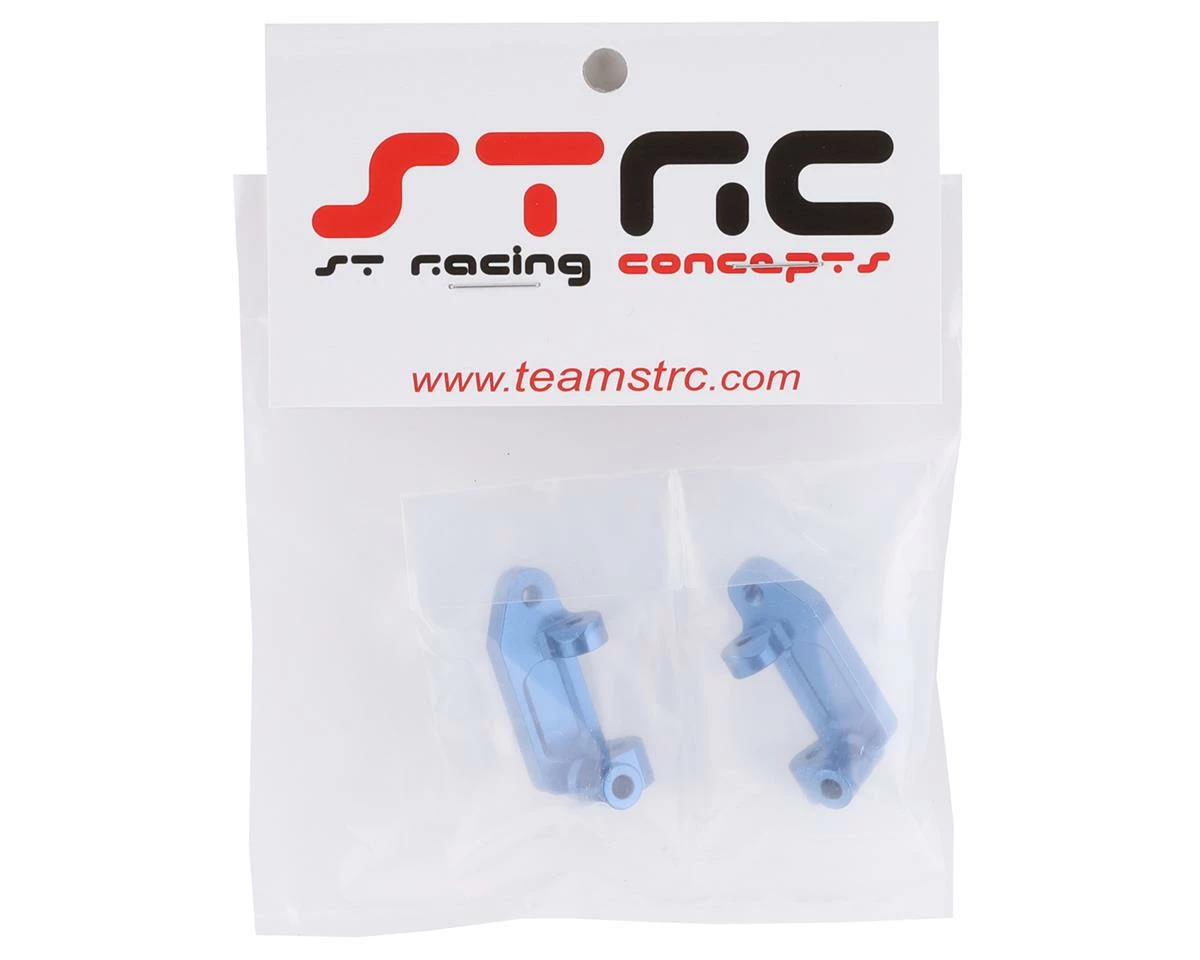 ST Racing Concepts Traxxas Drag Slash Aluminum Caster Blocks. These optional caster blocks are intended for the Traxxas Drag Slash and Bandit. Using these will help add strength and a small amount of weight to the front end of your drag slash. The increase in weight will aid in keeping the front on the ground under hard acceleration. Package includes two blue front caster blocks.