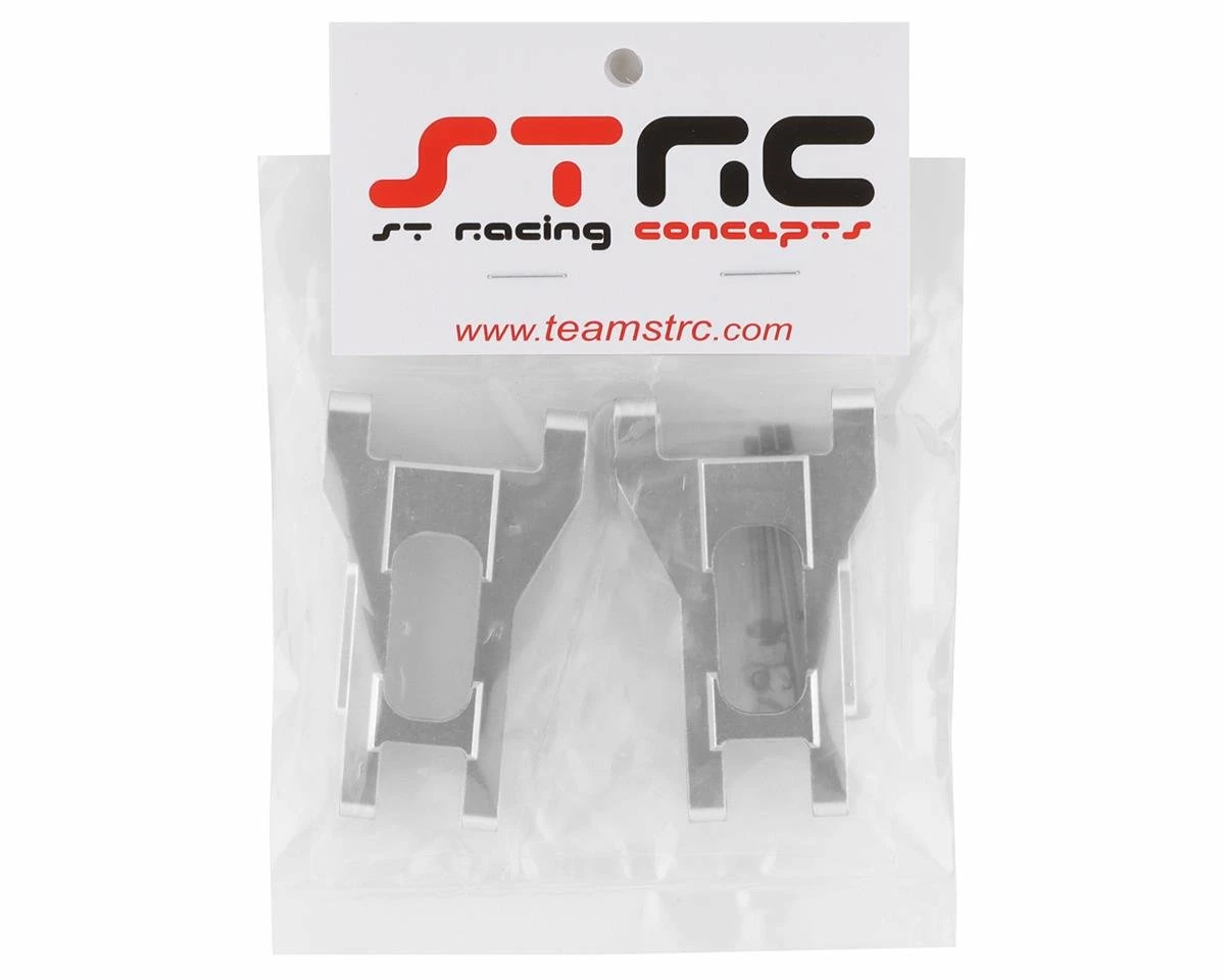 ST Racing Concepts Traxxas Drag Slash Aluminum Toe-In Rear Arms. These optional arms are great for increasing durability and increasing straight line speed in the Traxxas Drag Slash. Using these arms will reduce the amount of rear toe-in from 3° stock to 1°. Package includes two rear arms and one rear lock-nut style hinge pin set.