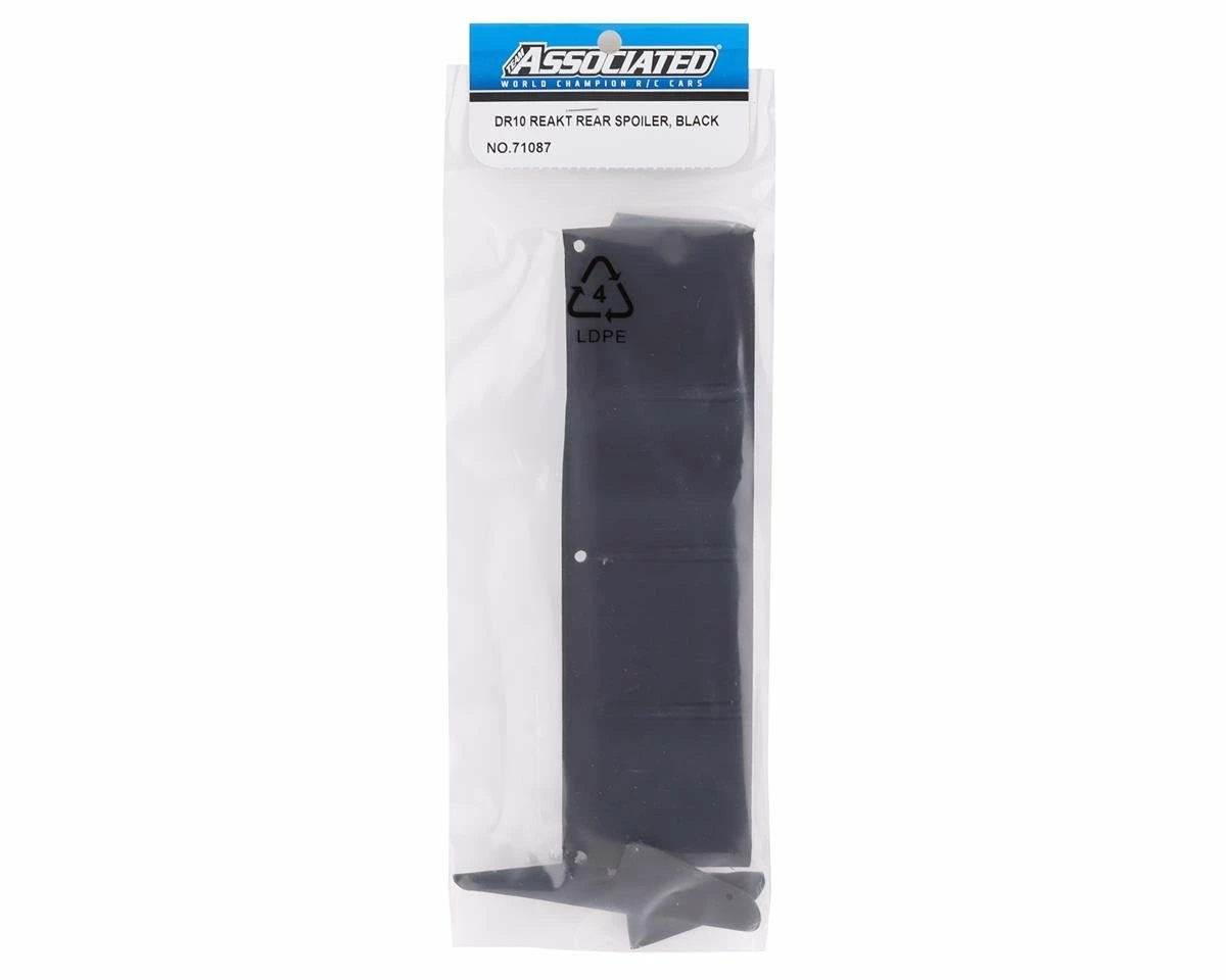 Team Associated DR10 Reakt Rear Spoiler. This replacement spoiler is intended for Team Associated DR10 equipped with the Reakt body. Package includes one unassembled wing and hardware.